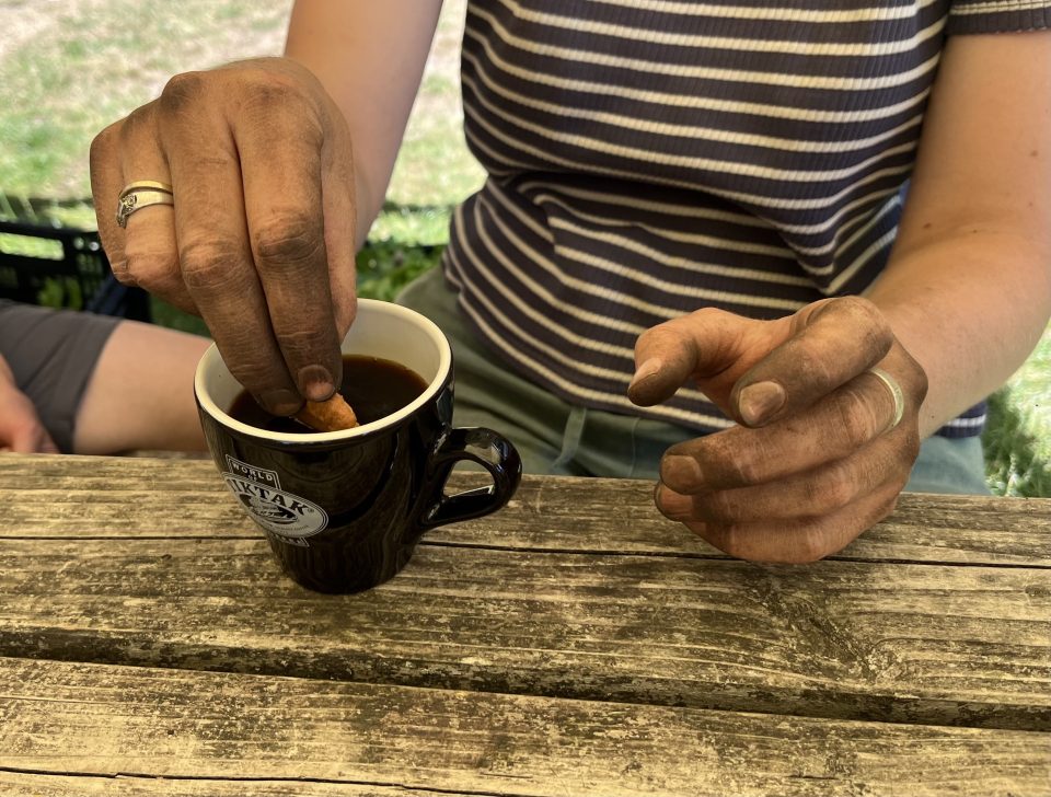 - Je loopt uitsluitend over de paden, dus niet op de bedden waar we groente telen. Let er ook op dat je tijdens het oogsten niet per ongeluk op een bed gaat staan, ook niet als deze leeg is of lijkt. Dit is belangrijk voor een gezond bodemleven!