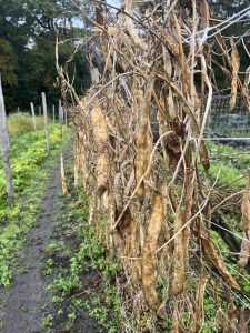 Deze week kunnen we de droogbonen oogsten. Misschien denk je; maar die plant ziet er helemaal niet meer lekker uit. Dat klopt!