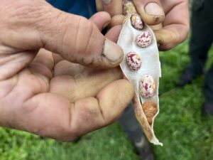 We hebben mooie kievitsbonen (op de foto) die het patroon hebben van kievietseieren, en heilige boontjes met een rood-bruine tekening in de vorm van een engel of monstrans.